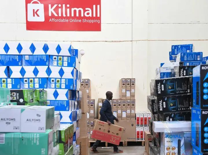 2023年11月10日,在肯尼亚姆洛隆戈,Kilimall员工在仓库内工作。Kilimall是在肯尼亚运营的主要电商平台之一,也是第一家在非洲设立海外仓并实现100%在线支付的中国电商平台。新华社记者 李亚辉 摄