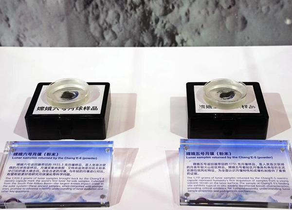 2025年11月5日至10日,第八届中国国际进口博览会在上海举办。本届进博会上,中国馆展示中国“十四五”期间全面深化改革、推进高水平开放的最新成就,众多科技成果引人瞩目。图为11月5日在第八届进博会国家展中国馆拍摄的嫦娥五号月壤和嫦娥六号月壤。 新华社记者 刘颖/摄