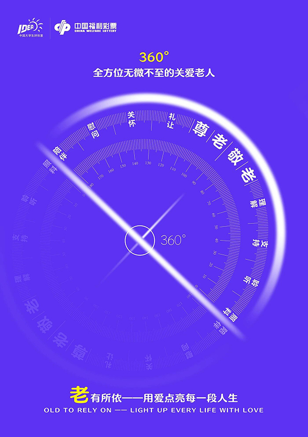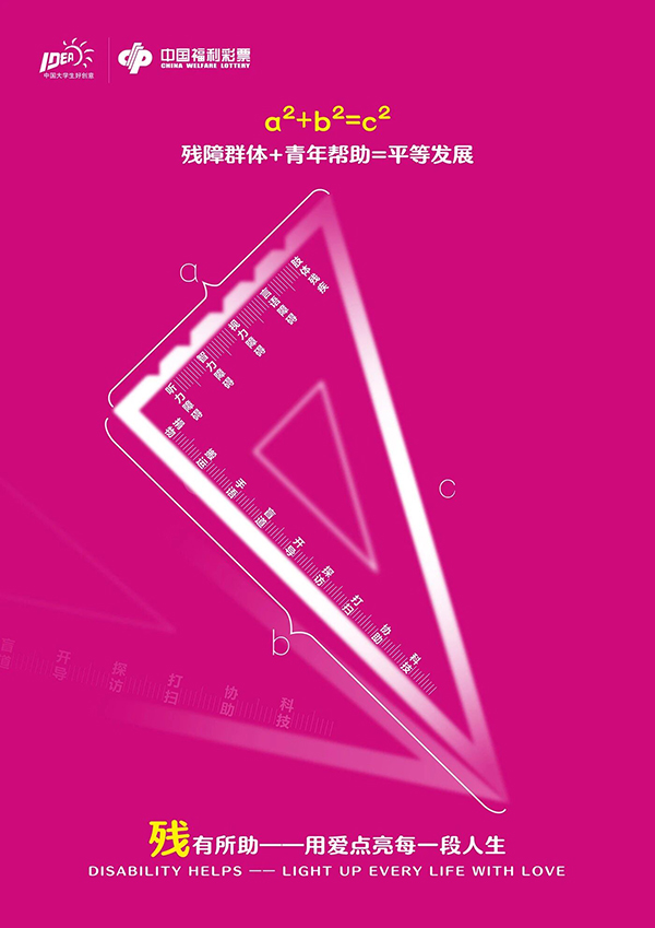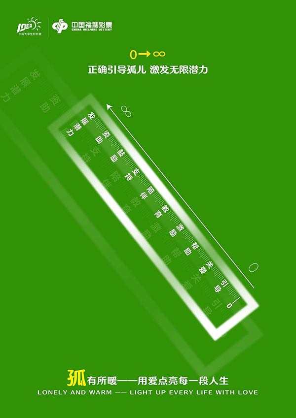 点评:这组作品以三角板、量角器、直尺分别对应 “扶老、救孤、助残” 公益方向,借数学工具属性隐喻公益价值,通过具象符号化表达,既让福彩公益概念直观可感,又有效唤起大众对福彩公益事业的关注与共鸣。创意与公益传达兼具巧思。