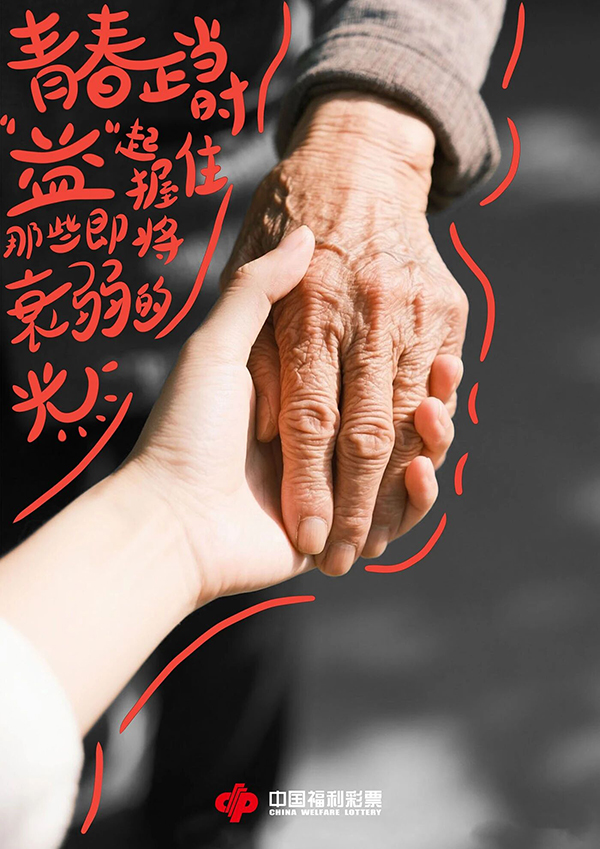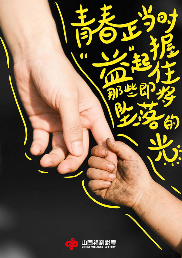 点评:通过老少牵手、成人与儿童牵手、同辈握手的画面,搭配公益文案,用红、黄、蓝色彩区分不同帮扶场景,将公益帮扶具象为 “握住光” 的温暖行动,既通过手的联结传递出青春公益的力量感,又以诗意化表达唤起大众对帮扶弱势群体、留住希望之光的共鸣。视觉与概念结合紧密。