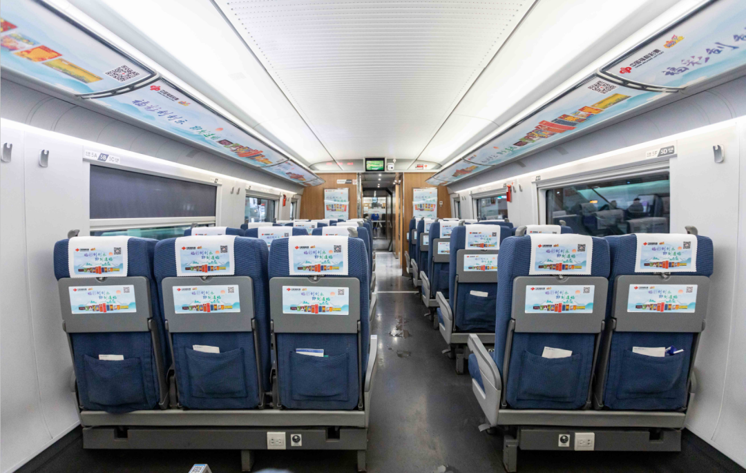 一辆印有“中国福利彩票”和“福彩刮刮乐 即刻造福”等字样的“中国福利彩票—福彩刮刮乐”高铁专列满载着暖暖爱意,奔驰在春天的阳光里。车厢内部,时尚喜庆、设计精美、充满文化气息的福彩刮刮乐票面图案,“唐潮”、“状元卷”、“喜相逢”、“幸运123”、“福兔献瑞”等十余款刮刮乐最新游戏和畅销游戏,出现车内的头枕巾 、桌贴、品牌天幕等醒目位置,多样的福彩元素,“公益、慈善、健康、快乐、创新”的福彩文化,让乘客们体验到了健康、快乐、温馨的福彩氛围,也为旅途增添了一抹愉悦和暖意。