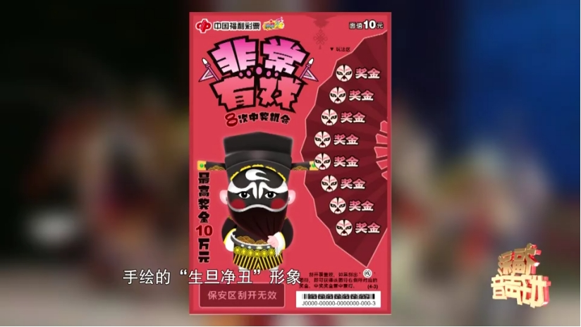 让老吴更高兴的是,他的京剧系列收藏册里,迎来了新成员。福彩新推出了一款刮刮乐游戏——“非常有戏”。它的设计初衷同样来自中国京剧戏曲。手绘的卡通“生旦净丑”形象,是京剧更具年轻视觉化的表达。全套4张,最高奖金10万元。老吴觉得这套新票相当亮眼,他认为福利彩票与中国传统文化、流行文化有了更多更好的结合,碰撞出更多火花,十分具有收藏意义。