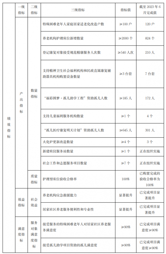 (1)使用中央集中彩票公益金支持社会福利资金533.1万元支持西宁市、海东市、果洛州、海南州、玉树州、黄南州养老机构(含特困供养机构)配备不少于2000个护理型床位,截至目前已购置824个护理型床位。通过实施该项目,当地养老服务设施服务能力将得到进一步提高。