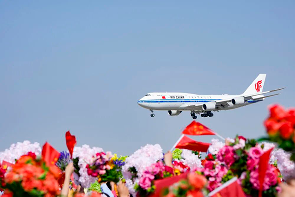 飞机沿着跑道滑行,飞向万里碧空。送别的人群,沉浸在幸福的喜悦中,久久不愿离去。
