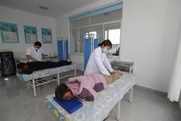 此外,惠民综合体还设有百姓影院、中医医疗室、文化娱乐室等功能区。百姓影院每月播放红色电影和戏曲节目等;中医医疗室为群众提供针灸、艾灸、推拿、穴位按摩服务,村民在家门口就能享受专业诊疗;文化娱乐室里,群众可以打牌、下棋、唱戏,成为大家的“精神乐园”。