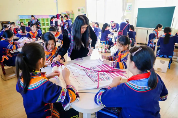 在民族文化浓郁的地区,少年宫成为非遗传承的“活课堂”。云南省普洱市墨江哈尼族自治县联珠镇第一小学,2015年4月在公益金支持下启动乡村学校少年宫项目,同年5月正式开展活动,师生参与率达 100%。学校除开设音乐、体育、美术、科技等31个常规项目外,特意开设巴乌、刺绣、哈尼传统体育、牛腿琴、牛皮大鼓等哈尼族非物质文化传承活动班,覆盖40个教学班,其体育、音乐、绘画等活动团体多次在省、市、县展演比赛中斩获佳绩。