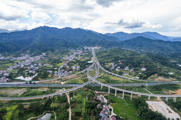 2025年8月19日拍摄的湖南炉慈高速慈利西互通枢纽(无人机照片)。炉慈高速是G59呼和浩特至北海高速公路的一部分,位于常德市石门县及张家界市慈利县境内。这条高速将长江三峡、壶瓶山、张家界等黄金旅游景点串珠成链,构建起湘鄂两省“两小时旅游圈”。新华社记者 陈思汗 摄
