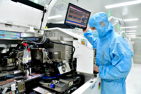 2025年2月13日,在山东一家电子有限公司,工作人员在生产线值守。新华社记者 郭绪雷 摄