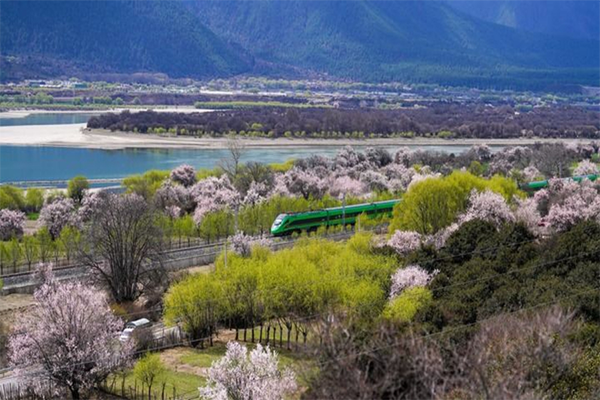 2025年4月2日,复兴号列车穿行在拉林铁路林芝段。新华社记者 晋美多吉 摄
