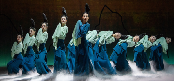 2022年,舞蹈诗剧《只此青绿》亮相央视春晚后,迅速走红。该节目取材于《千里江山图》,凭借着典雅服装、绝美配色、灵动舞姿展现出一幅青绿色的山峦画卷,是将舞台艺术与非遗工艺相结合的“集大成者”,为艺术传承文化树立了榜样。