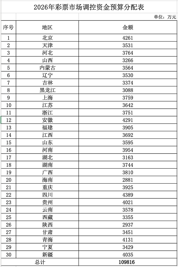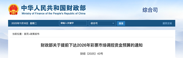 日前,《财政部关于提前下达2026年彩票市场调控资金预算的通知》(财综〔2025〕43号,以下简称《通知》)正式发布。