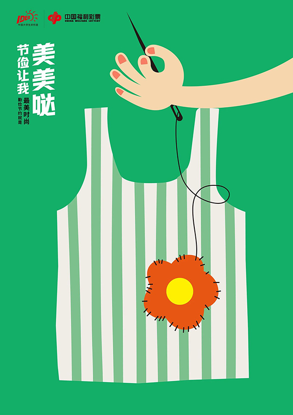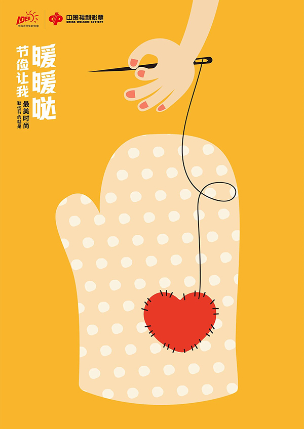 点评:《最美时尚》采用蓝、绿、黄三种高饱和度的纯色背景,分别对应袜子、围裙、隔热手套的场景,整体色彩明快且协调,视觉识别度高,传递“勤俭节约”的美德,创意巧妙且充满温情。
