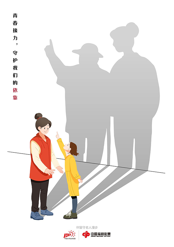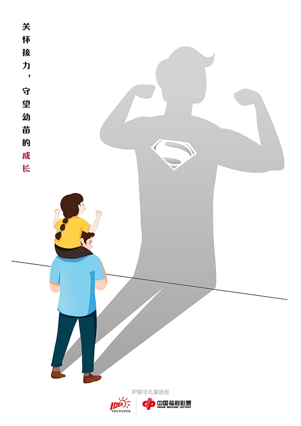 点评:以“益”之名,接力向光。这组作品以 “影子象征” 为创意亮点,分别呈现老人帮扶、家庭守护、残障助力的场景,影子幻化成温暖的陪伴者、超人守护者、奔跑的激励者。画面通过现实人物与象征公益力量的影子结合,生动传递福彩公益为不同群体带来关怀、守护与希望的理念。