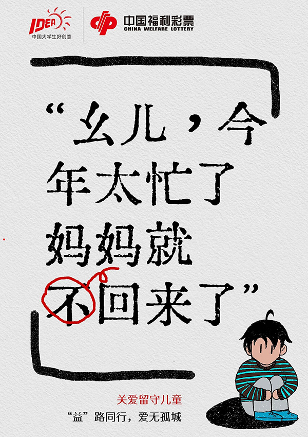 点评:《爱无孤城》以直击人心的情感叙事聚焦留守儿童议题,将留守儿童在亲情陪伴上的缺失具象化,用朴素的文字与插画,构建起充满遗憾的情感画面,让“关爱留守儿童”的议题从物质帮扶延伸至精神陪伴,立意更具深度。